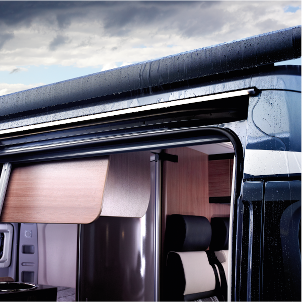 Com o RainTec RT 100 da Dometic, os donos de uma Fiat Ducato podem finalmente dizer adeus aos banhos indesejáveis, de cada vez que a porta do veículo é aberta num dia de chuva. O nosso sistema de drenagem fácil de montar para toldos PerfectRoof PR 4500 dispõe inclusivamente de uma fita LED integrada para iluminar as noites escuras e manter-se seco ao mesmo tempo!
