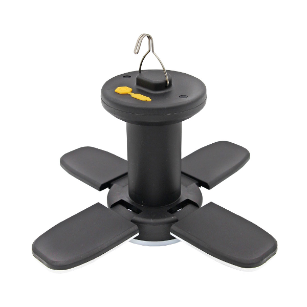 Candeeiro dobrável para camping, 6W 6500K. Contêm 60 LEDS SMD, 2 baterias de 3.7V de 1200mAh. Pode ser usada de 2 formas, como lanterna quando os panéis estão fechados, ou como lâmpada quando estão abertos. Inclui gancho, cabo USB-C e com 5 modos de luz, 40Lm, 100Lm, 150Lm, 400Lm e 500Lm e função flash. Feito e ABS e borracha, certificação IP44 e autonomia até 25 horas. Tempoe de carga cerca de 5.5 horas.