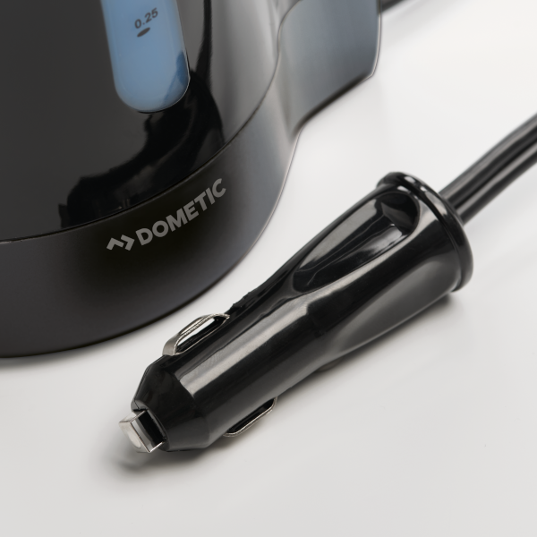 Chaleira Dometic PerfectKitchen MCK750 12V, para aquecimento de líquidos. Possui mecanismo automático para desligar, quando a fervura é alcançada de forma a evitar a fervura a seco.