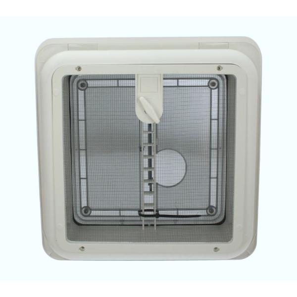 Clarabóia Fiamma de 28x28Cm, com tampa acrílica e rede mosquiteira fixa.