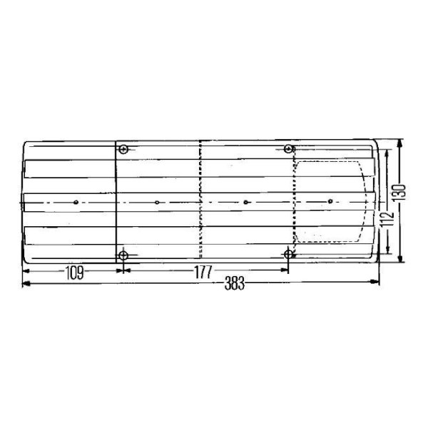 Farolim traseiro Hella 383x130x60mm. Pode ser usado tanto à direita como à esquerda.