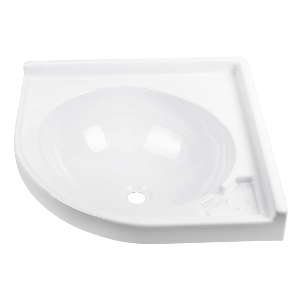 Lavatório de canto branco 430x430mm indicado para montagem em casas de banho.