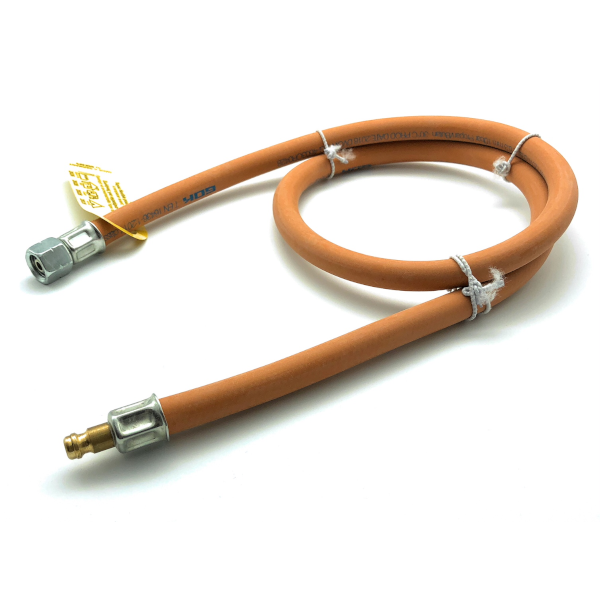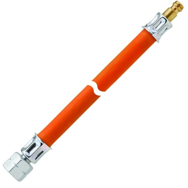 Mangueira de gás de 1.5m com combinado de ligador para tomada de gás exterior e porca com bicone.