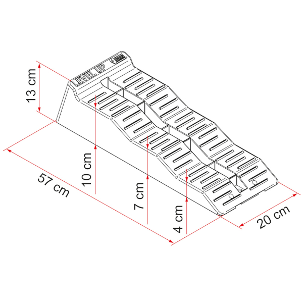 Conjunto de 2 niveladores Level Up Fiamma, cor cinza. Ideal para nivelar a sua viatura devido aos seus 3 patamares e com capacidade máxima por eixo de 5 toneladas.