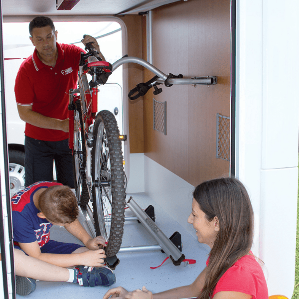 Suporte 2 bicicletas para montagem na garagem da autocaravana, Fiamma Garage. Permite adicionar a 3ª bicicleta.