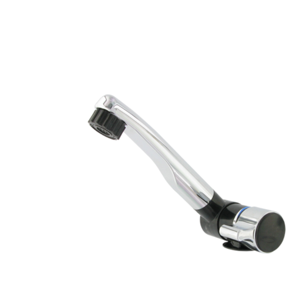 Torneira simples plástica cromado/preto London elétrica a 12V com interruptor integrado. Ideal para lava-louças com tampo dado o seu bico rebatível.